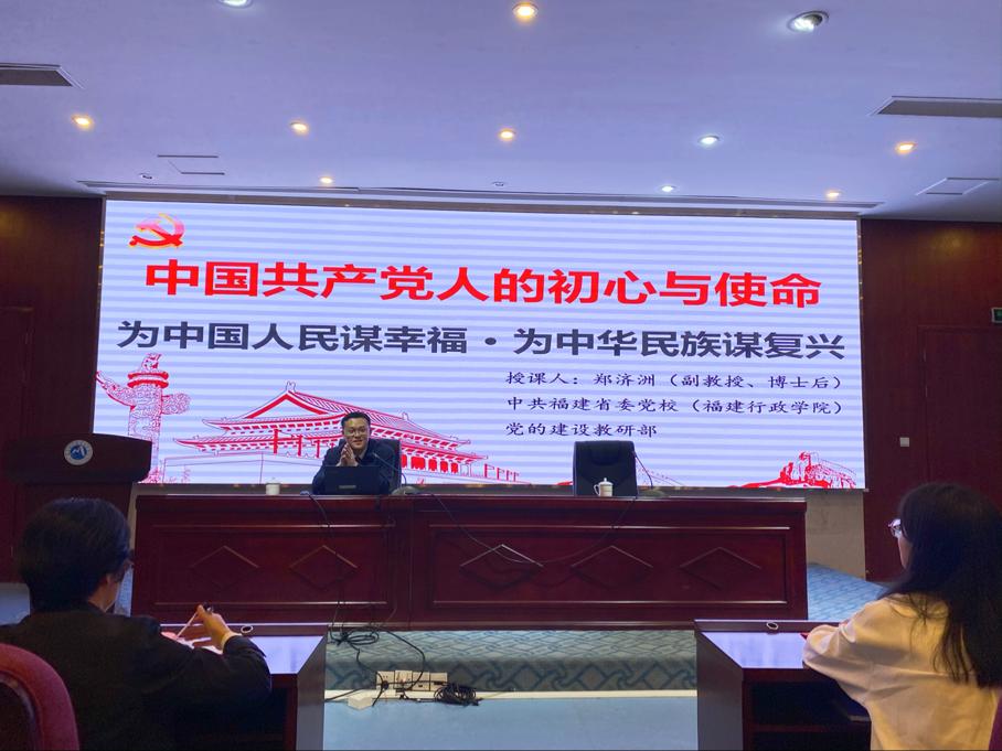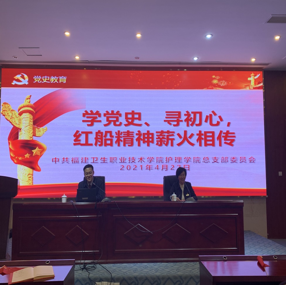 2021年4月27日,護理學院黨總支在實訓樓四樓報告廳舉行特邀組織員聘任儀式暨“學黨史、尋初心,紅船精神薪火相傳”主題黨日活動。本次活動邀請了中共福建省委黨校黨的建設教研部鄭濟洲博士來校授課。校黨委副書記李美華、組織統(tǒng)戰(zhàn)部部長吳華、副部長謝宗穎、人事處副處長劉明珠,組織統(tǒng)戰(zhàn)部、人事處、護理學院黨總支全體教職工黨員、學生工作部部分輔導員及護理學院黨總支全體入黨積極分子共200余人參加了此次活動。