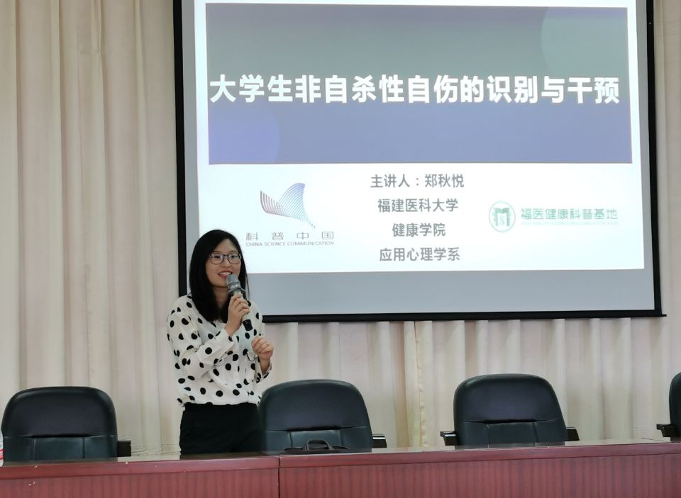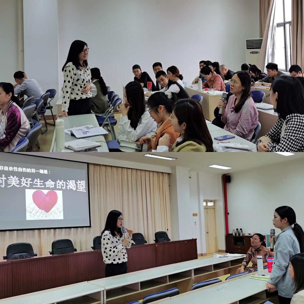 為了幫助輔導(dǎo)員提高學(xué)生心理工作業(yè)務(wù)能力,更好地幫助學(xué)生解決心理問(wèn)題,2021年4月27日上午,我校在行政樓六樓會(huì)議室舉行《大學(xué)生非自殺性自傷的識(shí)別與干預(yù)》主題講座。本次講座的主講嘉賓是國(guó)家二級(jí)心理咨詢師、福建醫(yī)科大學(xué)心理健康指導(dǎo)中心心理咨詢師鄭秋悅老師。講座由學(xué)生工作部副部長(zhǎng)張麗萍主持,全體專(zhuān)兼職輔導(dǎo)員與心理咨詢師參加。