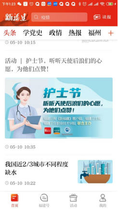 福建日?qǐng)?bào)《新福建》客戶端、福建衛(wèi)生報(bào)、福建衛(wèi)生職業(yè)技術(shù)學(xué)院聯(lián)合開展“聽聽天使后浪的心愿,為她們點(diǎn)贊”系列活動(dòng),邀請(qǐng)22位學(xué)生代表,表述對(duì)護(hù)士這份職業(yè)的理解和憧憬。經(jīng)網(wǎng)友投票,點(diǎn)贊前5名最佳心愿發(fā)表人:江山美、徐嘉琪、陳昕、黃雅彬、陳瑩瑩,榮獲本次活動(dòng)“護(hù)理屆優(yōu)秀后浪”稱號(hào)。