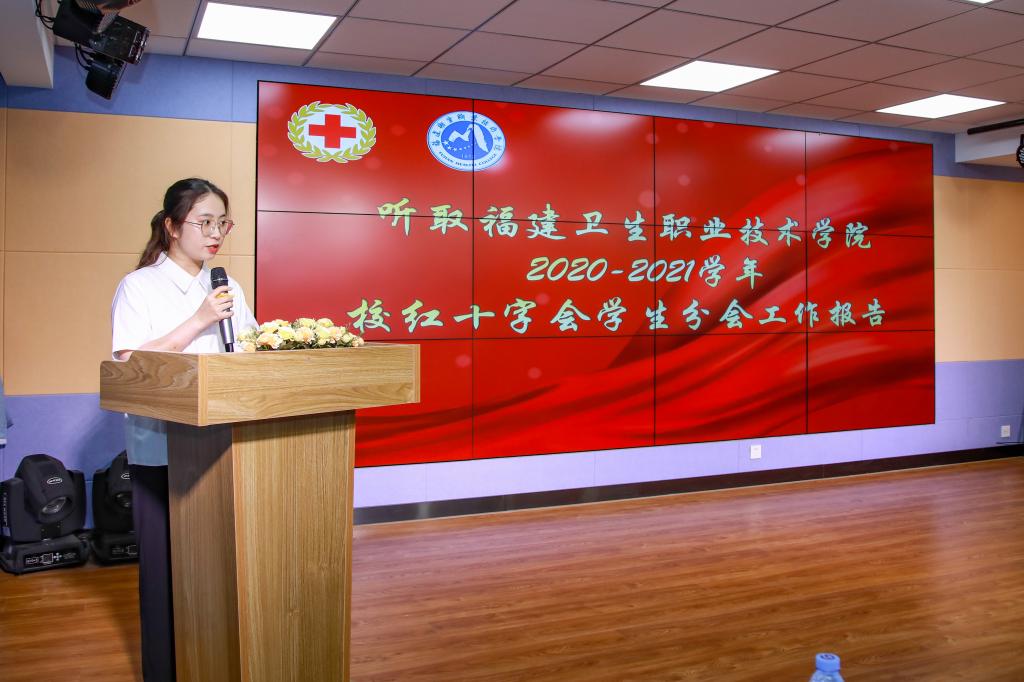 紅十字會學(xué)生分會負(fù)責(zé)人盧龍婷作《“弘揚(yáng)人道精神、凝聚青春力量”紅十字會學(xué)生分會2020—2021學(xué)年工作報告》。報告指出,近年來我校紅十字會學(xué)生分會在福建省紅十字會的正確領(lǐng)導(dǎo)和紅十字理事會的具體指導(dǎo)下,重整改革,優(yōu)化治會,踐行健康中國新理念,秉承“人道、博愛、奉獻(xiàn)”的紅十字精神,適應(yīng)新形勢,迎接新挑戰(zhàn),求真務(wù)實(shí),銳意進(jìn)取。乘風(fēng)破浪,不負(fù)韶華,展示紅十字會青年風(fēng)采,紅十字會學(xué)生分會采取多種活動形式,開展救死扶傷活動,激發(fā)廣大同學(xué)的主動性、積極性和創(chuàng)造性,為同學(xué)服務(wù),營造良好的校園文化氛圍。