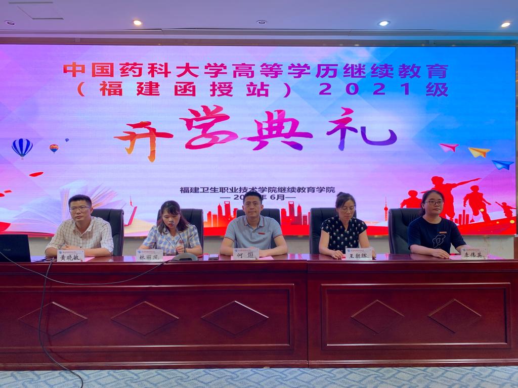 6月27日下午,中國(guó)藥科大學(xué)福建函授站2021級(jí)新生開學(xué)典禮在我校隆重舉行,繼續(xù)教育學(xué)院副院長(zhǎng)何烜、中國(guó)藥科大學(xué)理學(xué)院王朝暉副教授、2021級(jí)新生班主任黃曉敏老師,繼續(xù)教育學(xué)院李偉英、王皎葳,2021級(jí)全體函授新生參加了開學(xué)典禮,會(huì)議由繼續(xù)教育學(xué)院函授科科長(zhǎng)林麗鳳主持。