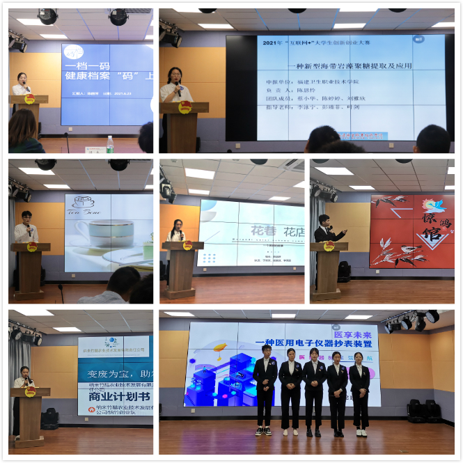 為全面落實(shí)習(xí)近平總書記給中國“互聯(lián)網(wǎng)+”大學(xué)生創(chuàng)新創(chuàng)業(yè)大賽“青年紅色筑夢之旅”大學(xué)生回信重要精神,響應(yīng)李克強(qiáng)總理“大眾創(chuàng)業(yè),萬眾創(chuàng)新”的號召,推進(jìn)我校創(chuàng)新創(chuàng)業(yè)教育改革,提升和拓展我校創(chuàng)新創(chuàng)業(yè)教育特色和優(yōu)勢,2021年6月23日,由我校教務(wù)處、團(tuán)委、學(xué)生工作部主辦,創(chuàng)新創(chuàng)業(yè)教育中心與健康管理系團(tuán)總支學(xué)生會承辦的2021年福建衛(wèi)生職業(yè)技術(shù)學(xué)院“互聯(lián)網(wǎng)+”大學(xué)生創(chuàng)新創(chuàng)業(yè)大賽在學(xué)校青年之家多功能廳舉辦。