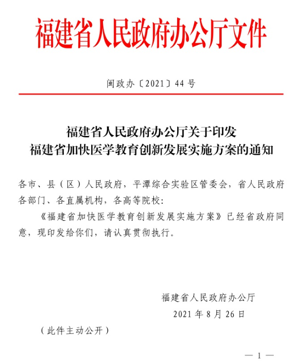 福建省加快醫(yī)學(xué)教育創(chuàng)新發(fā)展實(shí)施方案