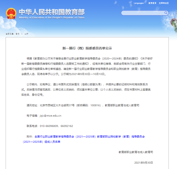 根據(jù)教育部最近公布的《新一屆行(教)指委委員名單公示》,教育部職業(yè)教育與成人教育司會(huì)同有關(guān)行業(yè)主管部門(mén)、行業(yè)組織等行指委牽頭單位審核遴選,確定新一屆行業(yè)職業(yè)教育教學(xué)指導(dǎo)委員會(huì)和職業(yè)院校教學(xué)(教育)指導(dǎo)委員會(huì)委員人選,我校黨委書(shū)記曾武祈位列委員名單。