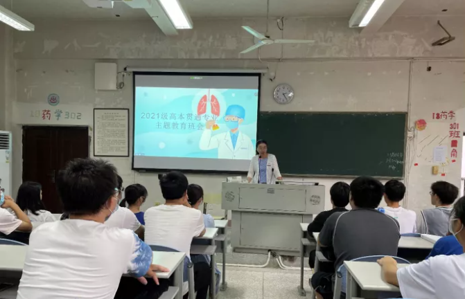 為幫助21級臨床醫(yī)學(xué)、醫(yī)學(xué)檢驗技術(shù)、醫(yī)學(xué)影像技術(shù)三個專業(yè)(高本貫通)班新生盡快適應(yīng)新的學(xué)習(xí)生活環(huán)境,建立集體歸屬感,認識專業(yè)特點及發(fā)展方向,科學(xué)規(guī)劃學(xué)習(xí)生活。2021年10月14日下午,2021級高本貫通專業(yè)主題教育班會在藥學(xué)系第一階梯教室召開,會議由學(xué)生工作部部長宋維主持,副校長黃銘珊、醫(yī)學(xué)系和醫(yī)學(xué)技術(shù)系相關(guān)老師與輔導(dǎo)員,以及104名同學(xué)參會。