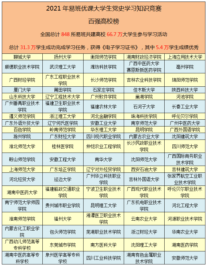 2021年9月,由“易班網(wǎng)”主辦,依托“易班優(yōu)課”平臺線上開展的“2021年易班優(yōu)課大學生黨史學習知識競賽”公布獲獎名單。經(jīng)過一個月的激烈角逐,學校獲得“優(yōu)秀組織獎”,孔祥榮老師被評為“優(yōu)秀指導(dǎo)老師”。