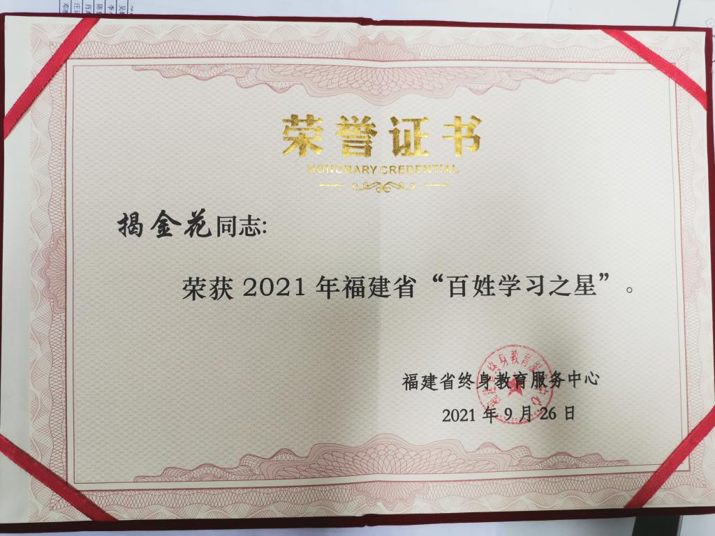 主會(huì)場(chǎng)活動(dòng)上,還進(jìn)行省級(jí)“百姓學(xué)習(xí)之星”“終身學(xué)習(xí)品牌”項(xiàng)目表彰。我校積極參與2021年福建省終身教育重點(diǎn)項(xiàng)目建設(shè),“科普益民,健康相伴——百姓身邊的生命健康講堂”榮獲福建省“終身學(xué)習(xí)品牌項(xiàng)目”,揭金花老師獲“百姓學(xué)習(xí)之星”稱號(hào)。
