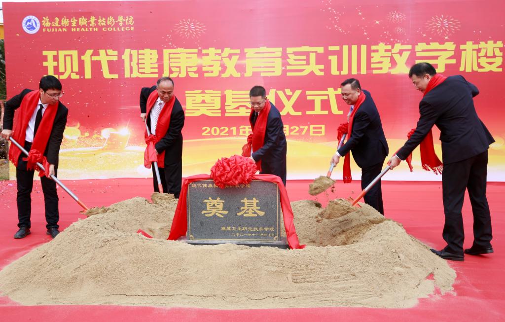 隨后,領導、嘉賓共同為現(xiàn)代健康教育實訓教學樓培土奠基?,F(xiàn)代健康教育實訓教學樓的開工奠基掀開了學校向更高發(fā)展目標奮進的新篇章。