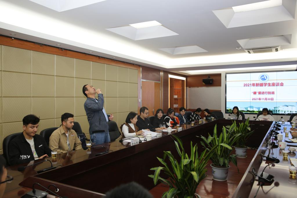 宋維首先介紹了我校新疆籍學(xué)生的情況和少數(shù)民族學(xué)生的管理工作。他表示,學(xué)校高度重視少數(shù)民族學(xué)生及新疆籍學(xué)子的成長(zhǎng)成才,在新生入學(xué)、學(xué)業(yè)幫扶、人文關(guān)懷、疫情補(bǔ)助、資助幫困等方面持續(xù)開展工作,針對(duì)民族學(xué)生的學(xué)習(xí)還專門設(shè)立了少數(shù)民族學(xué)生學(xué)習(xí)進(jìn)步獎(jiǎng),鼓勵(lì)同學(xué)們樹立學(xué)習(xí)的信心。