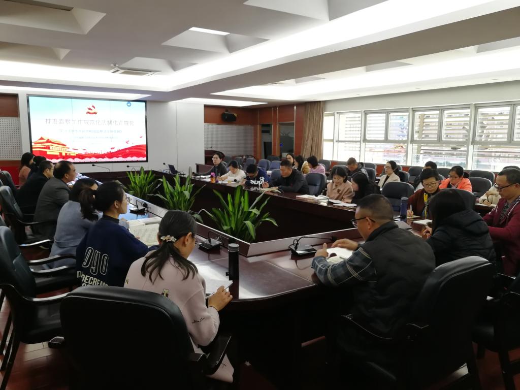 游鋒以《推進(jìn)監(jiān)察工作規(guī)范化法制化正規(guī)化》為題,圍繞《條例》制定出臺的背景、意義和亮點等幾個方面內(nèi)容,對《條例》進(jìn)行了全面系統(tǒng)的解讀和闡釋。他指出,《條例》的頒布施行,充分彰顯了紀(jì)檢監(jiān)察機(jī)關(guān)運用法治思維、法治方式正風(fēng)肅紀(jì)反腐的鮮明立場和接受最嚴(yán)格監(jiān)督約束的堅定決心,為推動健全集中統(tǒng)一、權(quán)威高效的監(jiān)察體系,更好地把制度優(yōu)勢轉(zhuǎn)化為治理效能提供了重要保障。
