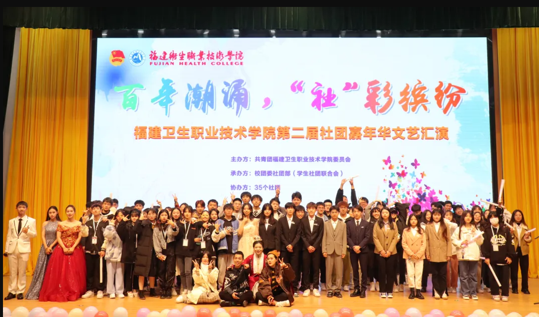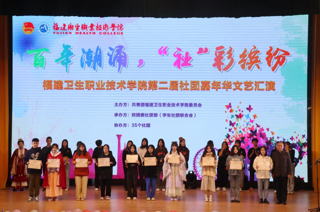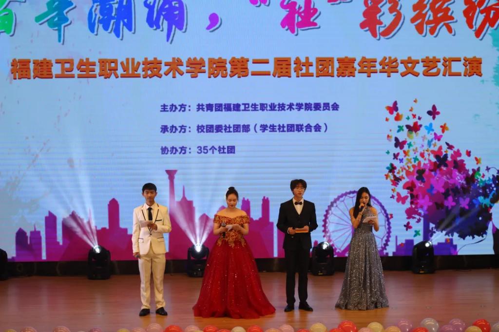 為深入貫徹黨的十九屆六中全會精神和習近平新時代中國特色社會主義思想,進一步加強校園文化建設,展示社團成員良好精神風貌和青春氣息。2021年12月23日晚,我校舉辦“百年潮涌‘社’彩繽紛”2021年學生社團嘉年華文藝匯演暨迎新年晚會。本次晚會由校團委主辦,35個社團承辦,校黨委書記曾武祈、校長許能鋒,副校長黃銘珊、鄭翠紅,各二級院系黨總支負責人、宣傳部及學生社團指導單位師生代表400余人線下觀看匯演,“福建衛(wèi)生職業(yè)技術學院”抖音直播間15000人次同步收看晚會。