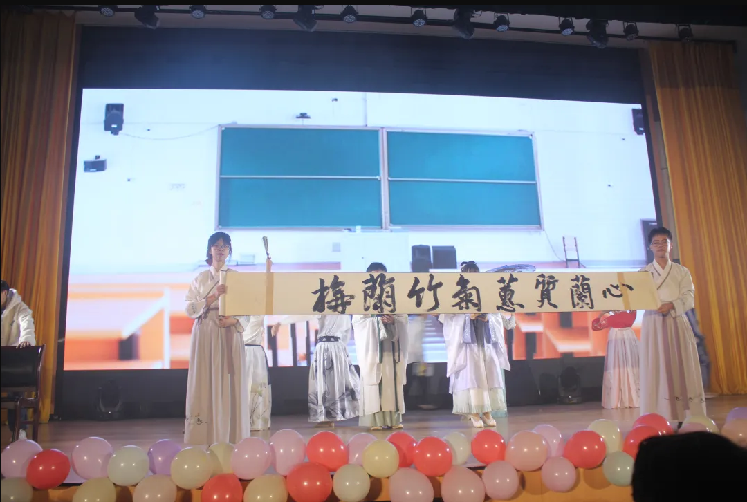 集雅軒協(xié)會、讀者協(xié)會、舞韻舞蹈協(xié)會聯(lián)合表演的《梅蘭竹菊》,展示了不畏風寒的堂堂四君子形象。