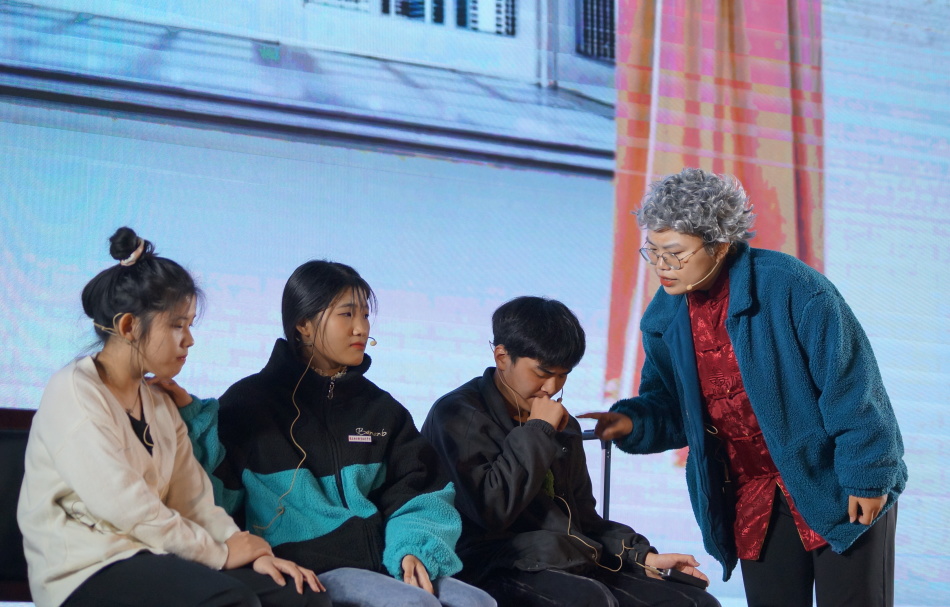 話劇社的小品《隔離不了的愛》,講述了隔離病毒,不隔離愛的暖心故事。