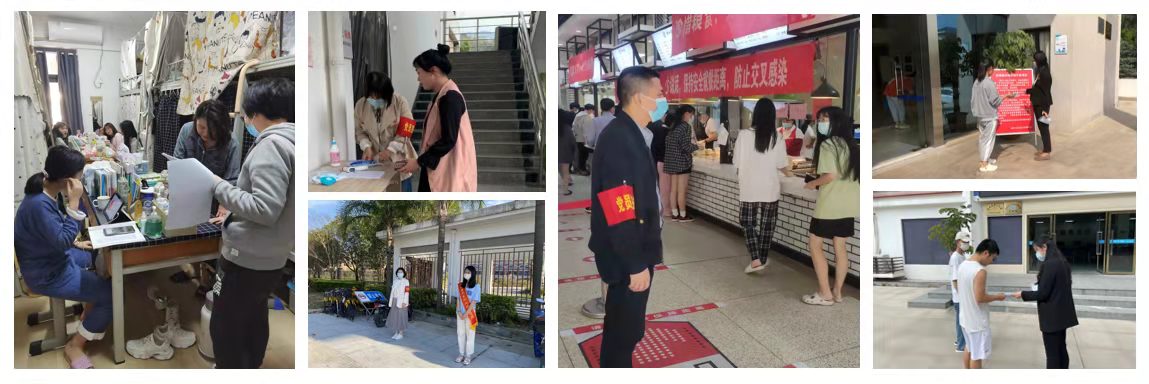 院直機(jī)關(guān)黨員同志們?cè)谑程谩⒖爝f驛站、超市等校內(nèi)人流量大的區(qū)域迅速集結(jié),主動(dòng)開(kāi)展黨員志愿服務(wù),積極投入到秩序維護(hù)、防疫督導(dǎo)等各項(xiàng)工作中;各院系黨員突擊隊(duì)深入學(xué)生宿舍,進(jìn)行線上教學(xué)督查;深入學(xué)生服務(wù)中心、圖書(shū)館等場(chǎng)所,督導(dǎo)學(xué)生規(guī)范佩戴口罩,嚴(yán)格執(zhí)行校內(nèi)防疫制度。各級(jí)黨組織凝聚力量,共同努力,充分發(fā)揮“一名黨員一面旗”的作用。