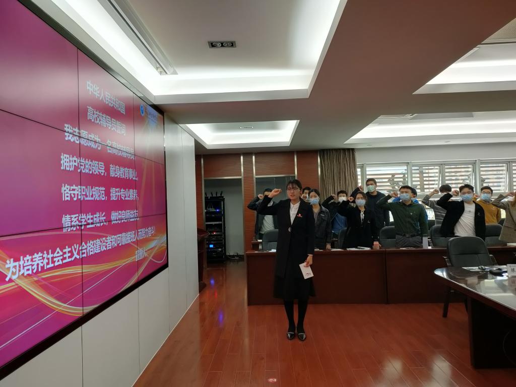 輔導(dǎo)員們平凡而充實(shí)的每一天是最堅(jiān)實(shí)的守候。會上,黃銘珊和陳俊穎為院系輔導(dǎo)員代表送上了鮮花與感恩卡,表達(dá)了學(xué)校和學(xué)生管理部門對這支隊(duì)伍的感謝和關(guān)懷。“我志愿成為一名高校輔導(dǎo)員……為培養(yǎng)社會主義合格建設(shè)者和可靠接班人而努力奮斗!”高校輔導(dǎo)員誓詞在會場響徹,在輔導(dǎo)員尹德愛的領(lǐng)誓下,全體輔導(dǎo)員莊嚴(yán)起立,鏗鏘有力的宣誓聲表達(dá)了這支隊(duì)伍對思政育人事業(yè)的決心和責(zé)任心,在今后的職業(yè)生涯中,他們將初心依舊,砥礪前行。