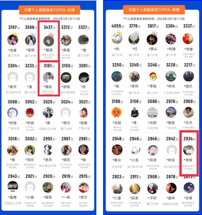 在體能賽月賽中,我校女生分別榮獲第三名和第八名的成績,男生也榮登全國前25名榜單。