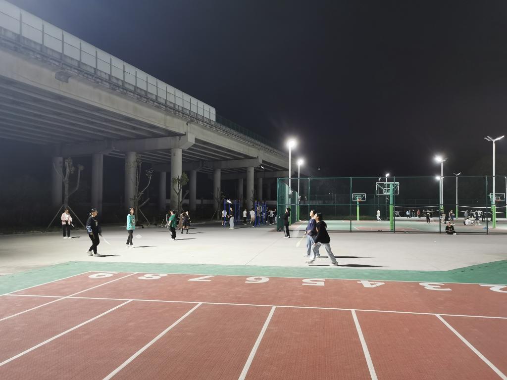 在體育部老師的帶領(lǐng)下,同學(xué)們以不聚集為前提,自覺到操場(chǎng)進(jìn)行體育運(yùn)動(dòng)。在夜晚的燈光下,同學(xué)們有的跑步,有的打球,享受運(yùn)動(dòng)的樂趣,塑造健康的體魄,舒緩封校狀態(tài)下壓抑的心情。