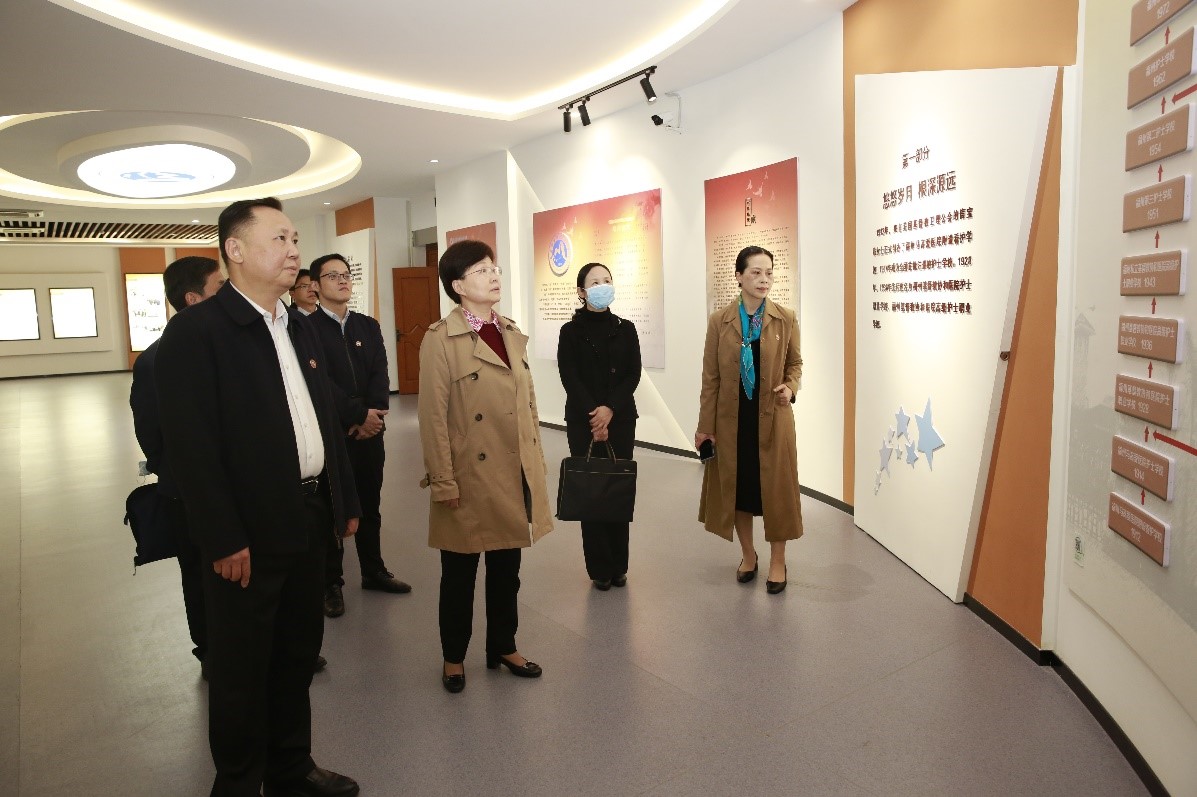 在學校黨委書記曾武祈、副校長鄭翠紅的陪同下,調(diào)研組一行先后參觀了我校校史館和實訓教學樓,隨后進行座談。