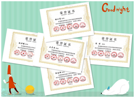 競賽通過“福建助學(xué)APP”向全省高校發(fā)布,歷時半個多月,參與競賽的高校達80所,參賽學(xué)生57510人。比賽建立了涵蓋資助政策、金融、團學(xué)知識等題目的題庫,由系統(tǒng)隨機分配競賽題目。經(jīng)我院學(xué)生工作處學(xué)生資助管理中心的組織動員,我院共有1002名學(xué)生參與了競賽。最終,5名選手從全省5萬名學(xué)生中脫穎而出,陳春柳同學(xué)榮獲一等獎,王才香、陳婷、陳伊捷、林小雯4位同學(xué)榮獲三等獎。此外,還有1名同學(xué)獲優(yōu)秀獎,62名同學(xué)獲鼓勵獎。12月25日,在學(xué)術(shù)廳舉辦的第三屆易班網(wǎng)絡(luò)十佳班級大賽暨學(xué)生工作表彰大會上,學(xué)生工作處對獲獎學(xué)生進行了表彰。
