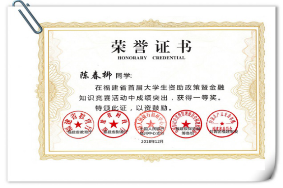 近日,在福建省首屆大學(xué)生資助政策暨金融知識競賽中,我院陳春柳等5名同學(xué)表現(xiàn)突出,獲得一等獎1名,三等獎4名。