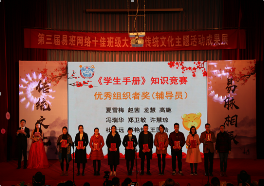 相約明湖之畔,大展中華風(fēng)采。12月25日晚,“致敬傳統(tǒng),易路同行”福建衛(wèi)生職業(yè)技術(shù)學(xué)院第三屆易班網(wǎng)絡(luò)十佳班級大賽暨學(xué)生工作表彰大會在學(xué)術(shù)廳成功舉行。本次大賽由學(xué)生工作處主辦,易班學(xué)生工作站承辦,學(xué)院黃銘珊副院長、福建藝術(shù)職業(yè)學(xué)院就業(yè)辦夏云清主任等出席了活動,院學(xué)生工作處、團(tuán)委、護(hù)理系、藥學(xué)系、醫(yī)學(xué)技術(shù)系等部門負(fù)責(zé)人,學(xué)院和各系易班分站指導(dǎo)老師,以及400余名同學(xué)共同參加了活動。