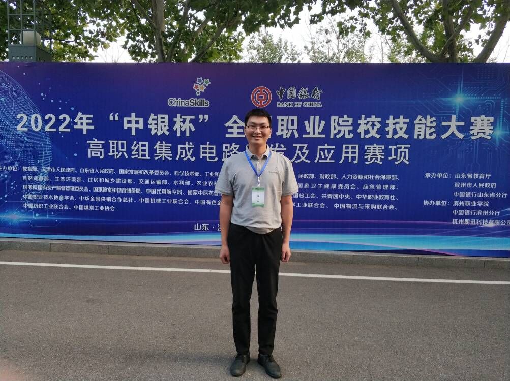 高手云集齊魯,技能強(qiáng)“芯”報(bào)國(guó)。2022年8月29日至31日,2022年全國(guó)職業(yè)院校技能大賽高職組集成電路開(kāi)發(fā)及應(yīng)用賽項(xiàng)在濱州職業(yè)學(xué)院舉行。本次大賽由教育部等36個(gè)單位主辦,山東省教育廳、濱州市人民政府承辦,濱州職業(yè)學(xué)院、杭州朗迅科技有限公司協(xié)辦,來(lái)自全國(guó)各地50支代表隊(duì)150名選手共聚齊魯大地,展開(kāi)激烈角逐。我校醫(yī)學(xué)技術(shù)系副主任鐘偉雄受聘擔(dān)任此次大賽集成電路開(kāi)發(fā)及應(yīng)用賽項(xiàng)裁判。