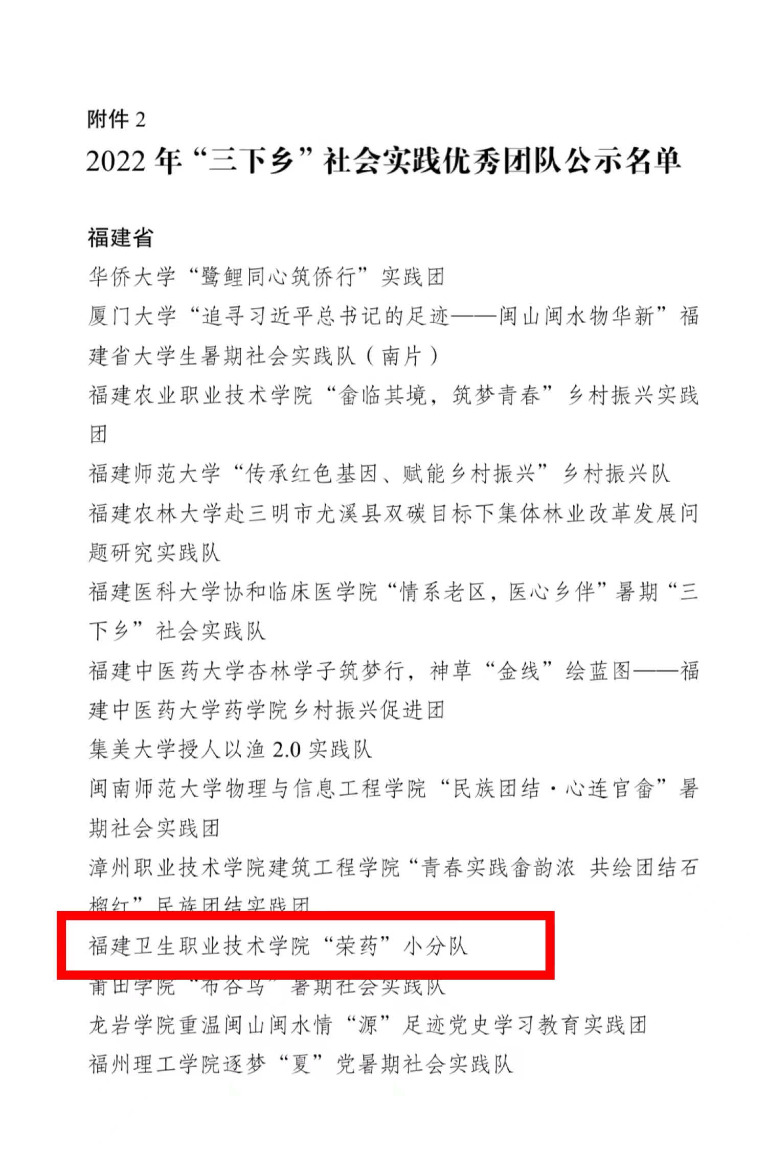 近日,共青團中央通報表揚一批在2022年“三下鄉(xiāng)”社會實踐活動中表現(xiàn)突出的優(yōu)秀集體、個人和項目,并通過新媒體平臺廣泛進行典型事跡做法宣傳。我校藥學院“榮藥”小分隊經(jīng)校級申報、省級團委審核推薦、組織評議等環(huán)節(jié),最終獲得全國優(yōu)秀團隊榮譽稱號。