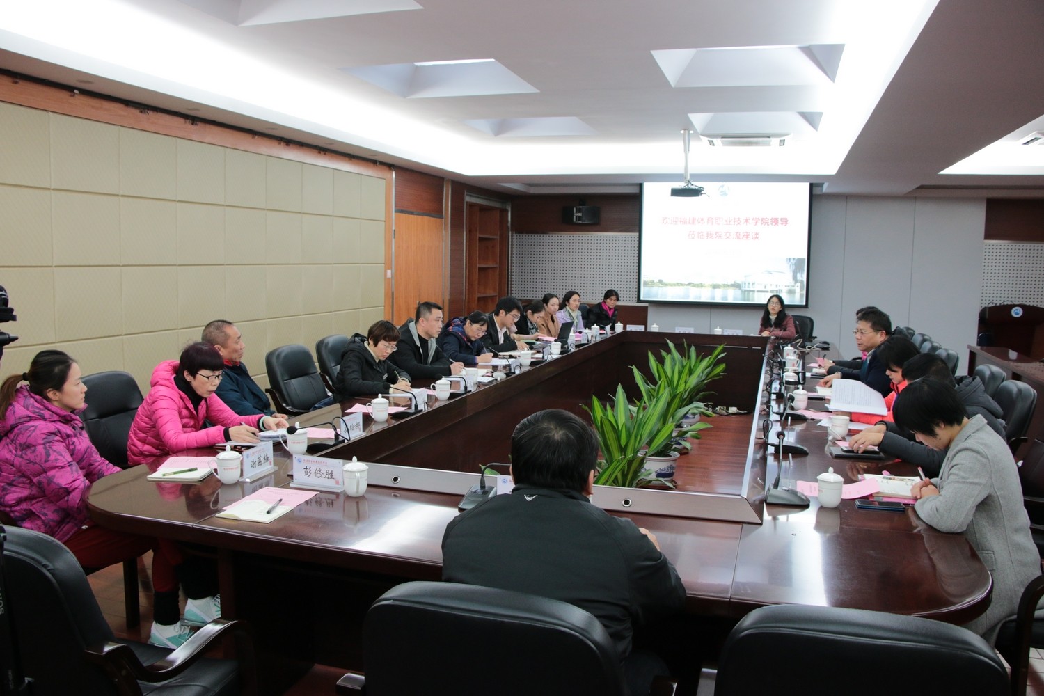 1月4日下午,福建體育職業(yè)技術(shù)學(xué)院董勁松院長帶領(lǐng)體育與保健系、田徑與體能訓(xùn)練團(tuán)隊(duì)相關(guān)教師一行15人來訪我院調(diào)研座談。學(xué)院蘇友新院長在行政樓四樓第一會(huì)議室會(huì)見了來訪客人并召開座談會(huì)。教務(wù)處、臨床醫(yī)學(xué)系、管理系負(fù)責(zé)人以及相關(guān)專業(yè)帶頭人參加了座談會(huì)。
