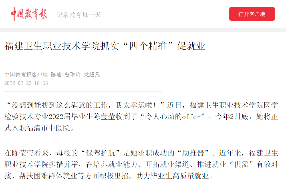 福建衛(wèi)生職業(yè)技術(shù)學(xué)院抓實(shí)“四個(gè)精準(zhǔn)”促就業(yè)》(2022年2月23日)