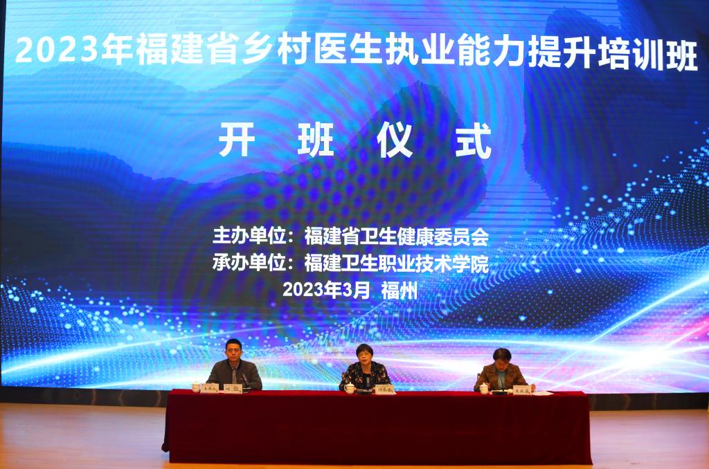 3月27日,2023年福建省鄉(xiāng)村醫(yī)生執(zhí)業(yè)能力提升培訓(xùn)班開班儀式在我校學(xué)術(shù)廳舉行。福建省衛(wèi)生健康委員會(以下簡稱省衛(wèi)健委)基層處處長付冬香、學(xué)校副校長朱扶蓉出席儀式并講話。護理學(xué)院、醫(yī)學(xué)院、健康管理系等院系負(fù)責(zé)人及340名鄉(xiāng)村醫(yī)生參加開班儀式。開班儀式由繼續(xù)教育學(xué)院副院長何烜主持。