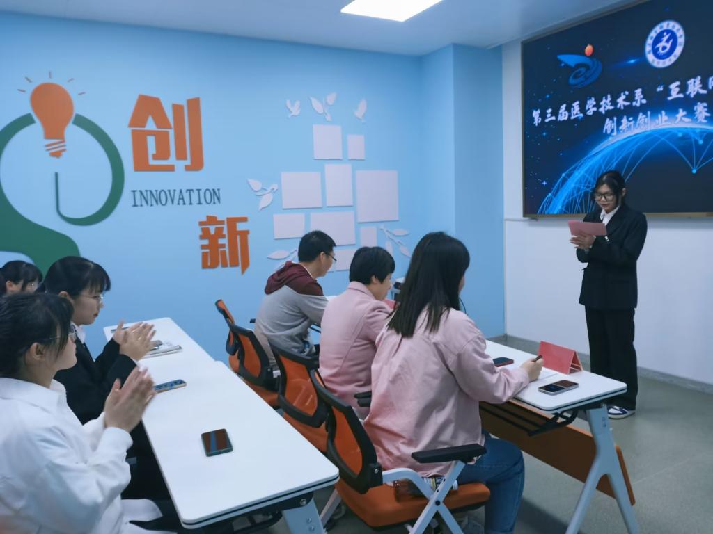 比賽采用線上線下相結(jié)合的方式進行,自比賽啟動以來,醫(yī)學技術(shù)系雙帶頭人黨支部采取往屆經(jīng)驗介紹、賽事專家輔導等有效措施,充分進行賽前動員,激發(fā)同學們創(chuàng)新創(chuàng)業(yè)熱情,共計收到100多件作品。經(jīng)過初賽網(wǎng)評篩選,共有六個團隊項目脫穎而出進入決賽。決賽分為項目展示和現(xiàn)場答辯兩個環(huán)節(jié),參賽團隊代表通過PPT展示創(chuàng)業(yè)計劃目的與想法、創(chuàng)業(yè)實施過程中可能遇到的問題與解決方案、團隊分工與介紹、市場預測等內(nèi)容,詳細闡述團隊的創(chuàng)新創(chuàng)業(yè)項目。