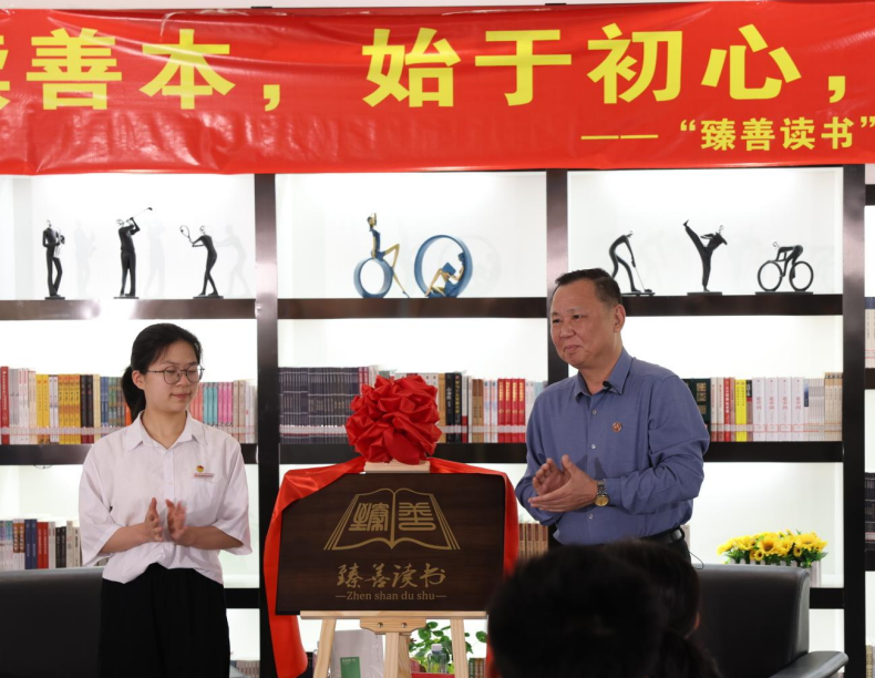 活動伊始,曾武祈與學生讀者代表林曉蓮同學共同為“臻善讀書”進行揭牌。