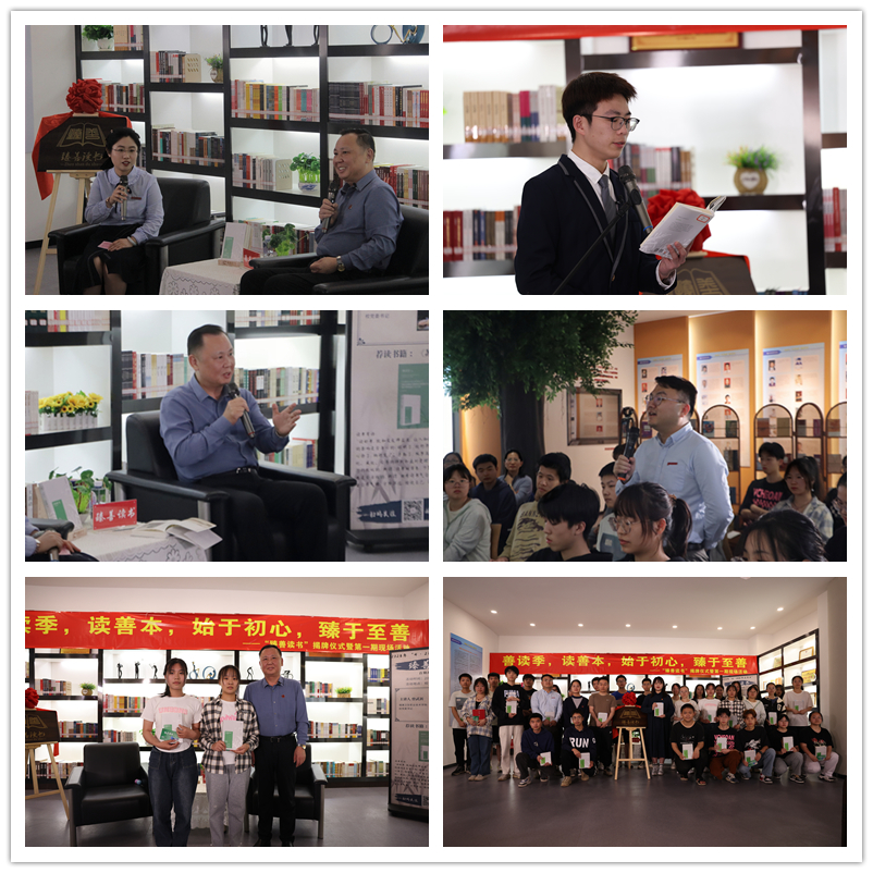 善讀季,讀善本,始于初心,臻于至善。4月23日下午,在第二十八個“世界讀書日”來臨之際,我?!罢樯谱x書”揭牌儀式暨第一期現場活動在校史館順利舉行。本次活動邀請校黨委書記曾武祈作為活動嘉賓,黨委副書記李美華、副校長黃銘珊出席活動,宣傳部、學生工作部、團委、圖書館負責人,各二級院系團總支書記、2022年度閱讀達人和校讀者協會學生代表參加現場活動。此次活動由圖書館劉穎老師主持。