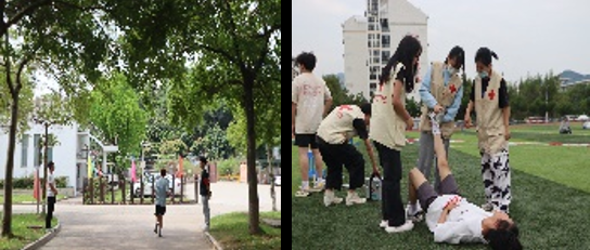教職工帶著孩子們經(jīng)過(guò)短暫的學(xué)習(xí)后,他們一手拿著地圖與指北針,另一手指引孩子前進(jìn)的方向,在校內(nèi)穿梭,尋找學(xué)校的美景。
