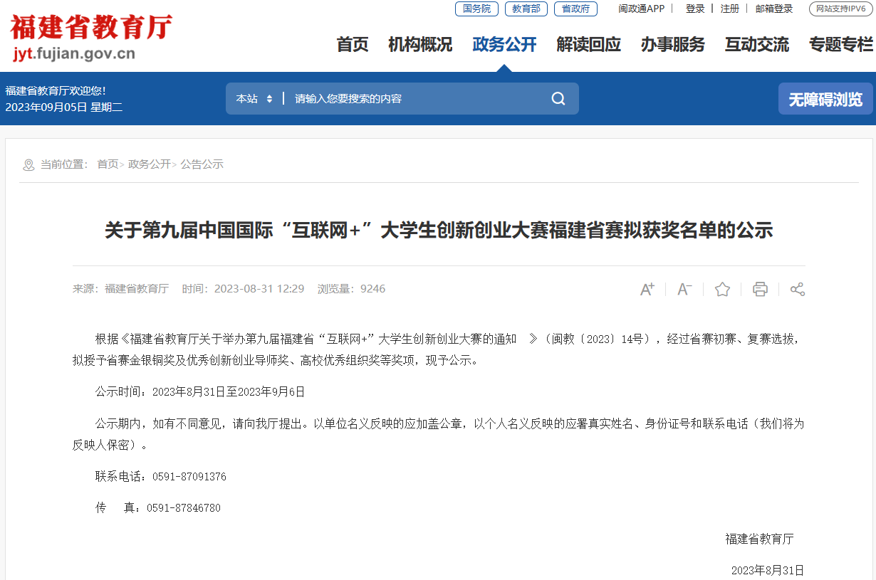 第九屆福建省“互聯(lián)網(wǎng)+”大學(xué)生創(chuàng)新創(chuàng)業(yè)大賽由福建省教育廳、福建省委統(tǒng)戰(zhàn)部、福建省委網(wǎng)信辦、福建省發(fā)改委、福建省工信廳、福建省人社廳、福建省農(nóng)業(yè)農(nóng)村廳、福建省市場監(jiān)管局(福建省知識產(chǎn)權(quán)局)、共青團(tuán)福建省委、福建省科協(xié)、福建省中華職教社等部門共同主辦,福州大學(xué)、黎明職業(yè)大學(xué)分別承辦,福建教育電視臺、福建省創(chuàng)新創(chuàng)業(yè)創(chuàng)造教育指導(dǎo)委員會(huì)等單位參與協(xié)辦。據(jù)悉,本屆大賽共吸引全省247所學(xué)校的85萬名師生,近22.3萬個(gè)項(xiàng)目報(bào)名參賽,參賽人數(shù)、項(xiàng)目數(shù)均創(chuàng)歷史新高。