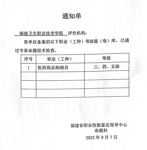 本期題庫(kù)建設(shè)涉及工種為醫(yī)藥商品購(gòu)銷(xiāo)員,共完成三、四、五級(jí)規(guī)范試題30套。新建題庫(kù)將在2023年11月進(jìn)行的醫(yī)藥商品購(gòu)銷(xiāo)員職業(yè)技能等級(jí)認(rèn)定考試中投入使用。