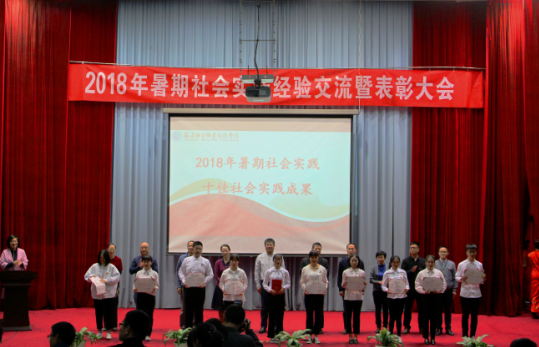 與會師生共同觀看了2018年暑期社會實踐成果精彩視頻后,院團(tuán)委黃曦書記宣讀表彰決定。會議表彰了榮獲“優(yōu)秀社會實踐團(tuán)隊”“優(yōu)秀指導(dǎo)教師”“社會實踐先進(jìn)個人”“社會實踐十佳實踐成果”“社會實踐優(yōu)秀實踐成果”等獎項的8個先進(jìn)集體和150名先進(jìn)個人。院系暑期社會實踐隊代表依次上臺做了經(jīng)驗交流。