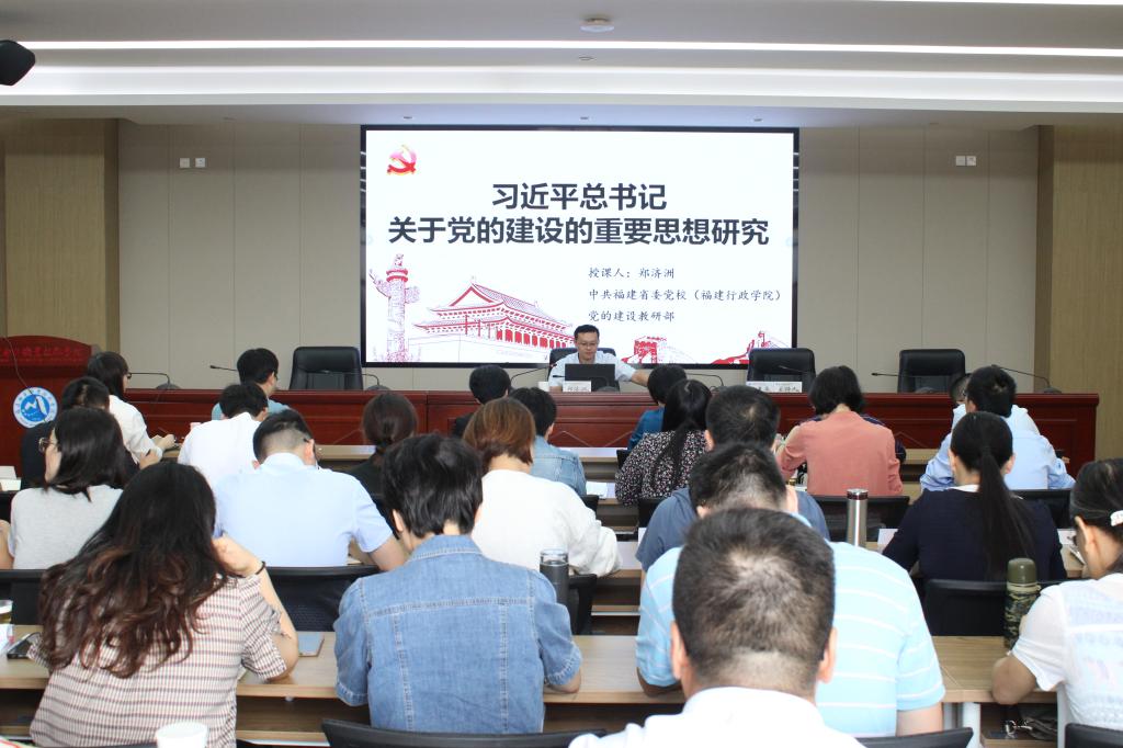 會議邀請了福建省委黨校鄭濟洲副教授作專題報告。他以《習(xí)近平總書記關(guān)于黨的建設(shè)的重要思想研究》為題,結(jié)合近現(xiàn)代史、黨史,圍繞“習(xí)近平新時代黨建思想的重要意義”“主要內(nèi)容”“實踐原則”三個部分系統(tǒng)闡釋了習(xí)近平總書記關(guān)于黨的建設(shè)的重要思想的形成、發(fā)展和應(yīng)用。整場報告主題鮮明、內(nèi)容豐富、邏輯清晰,對我校黨務(wù)干部理解和把握習(xí)近平總書記關(guān)于黨的建設(shè)的重要思想具有很強的理論指導(dǎo)作用。