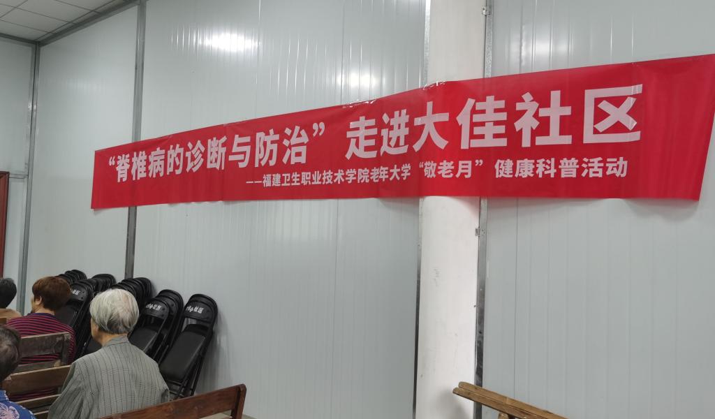 2023年10月是我國第14個“敬老月”,為弘揚中華民族愛老敬老的傳統(tǒng)美德,營造尊老助老的氛圍,向老年人傳遞關懷和溫暖,10月27日上午,我校老年大學組織繼續(xù)教育學院、醫(yī)學院相關師生一行前往閩侯荊溪鎮(zhèn)大佳社區(qū)開展“敬老月”健康科普活動。