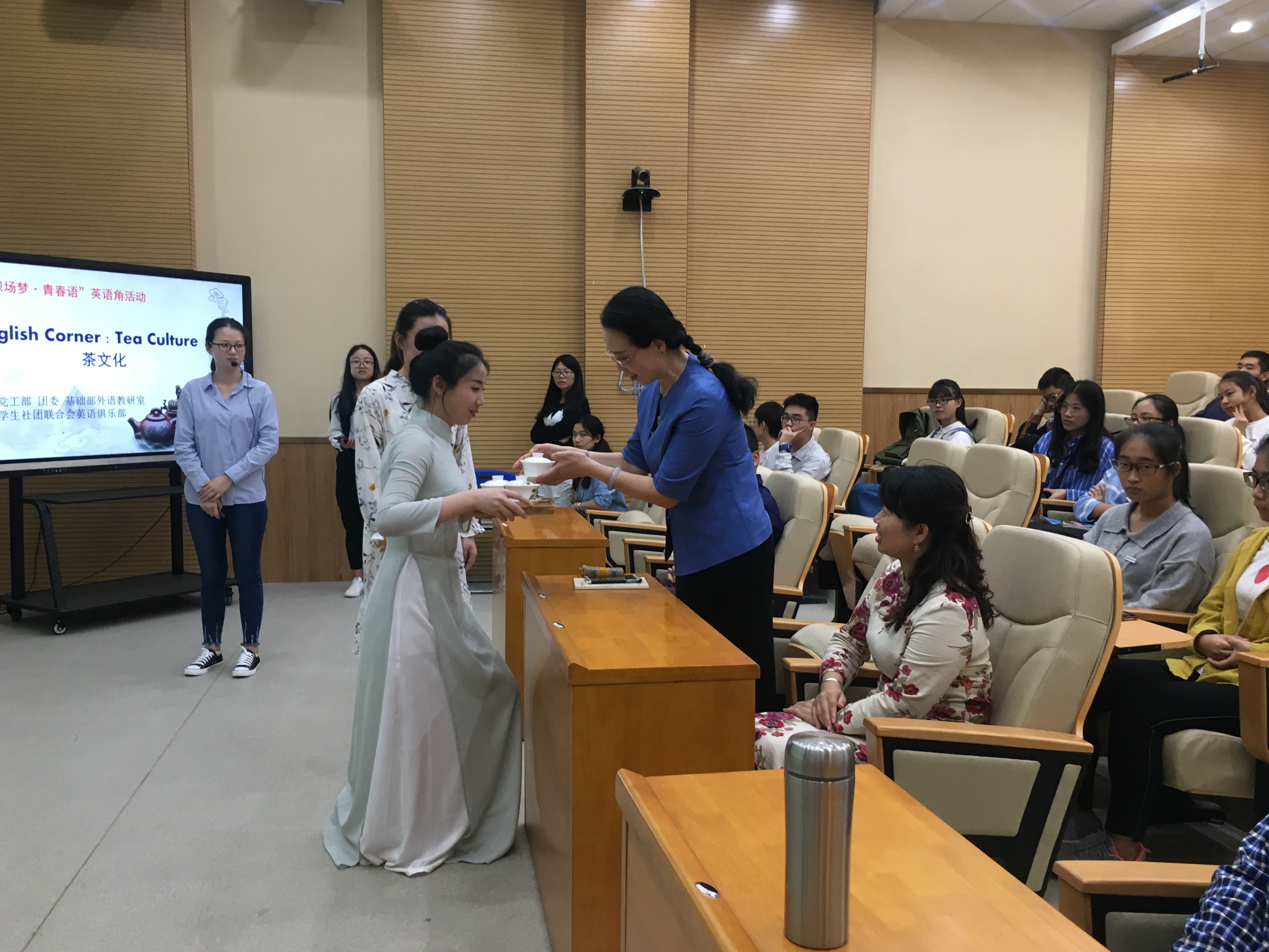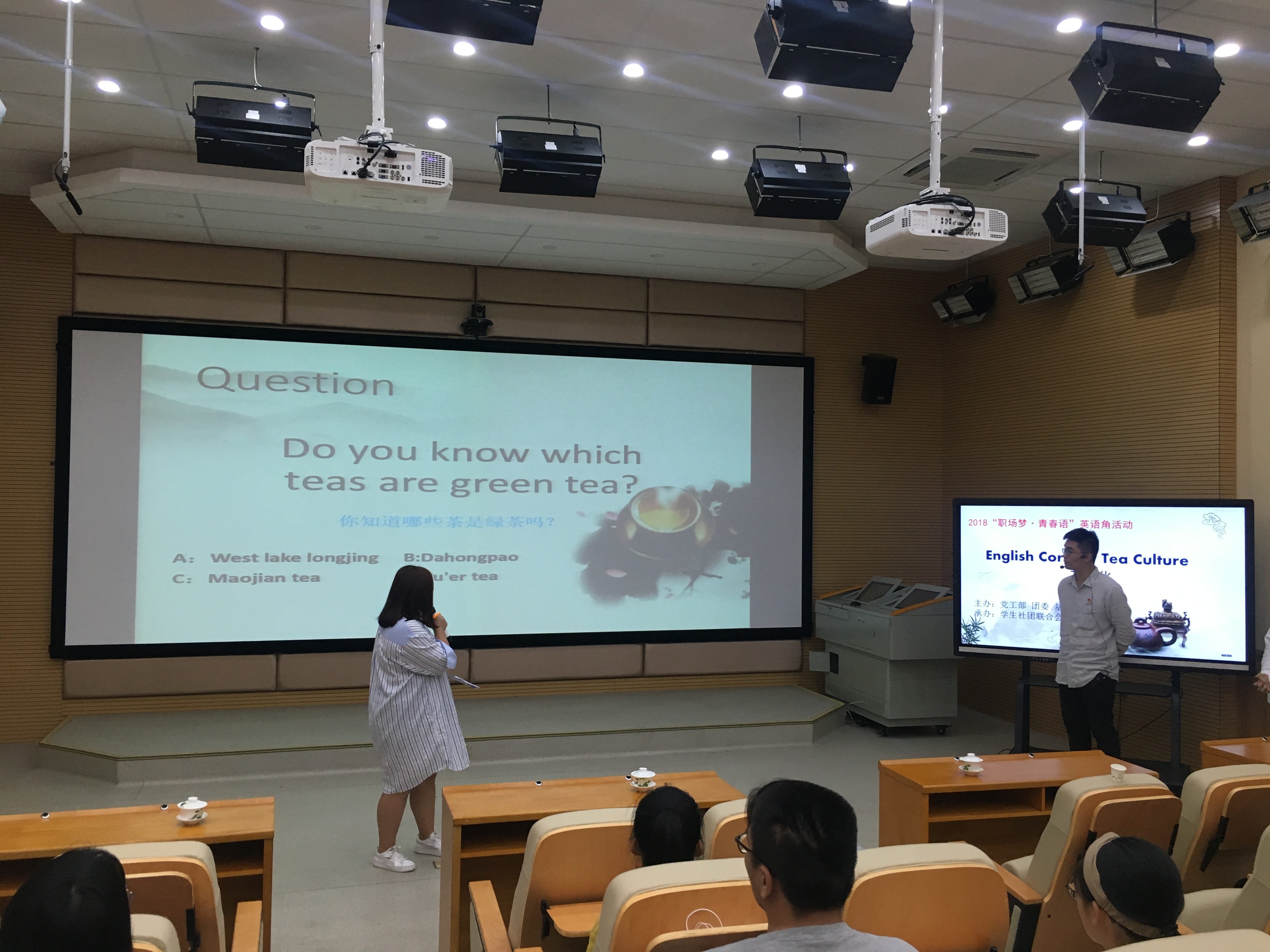 為弘揚中華優(yōu)秀傳統(tǒng)文化,探索課程思政育人途徑,提升我院學生英語運用能力,11月8日下午,我院在實訓樓305舉辦“職場夢?青春語”之“茶文化”英語角活動。本次活動由黨工部、院團委 基礎部外語教研室共同主辦,學院鄭翠紅副院長、團委黃曦書記、基礎部辦公室主任王鈍銳老師、外語教研室教師、英語俱樂部成員共30余人參加本次活動。