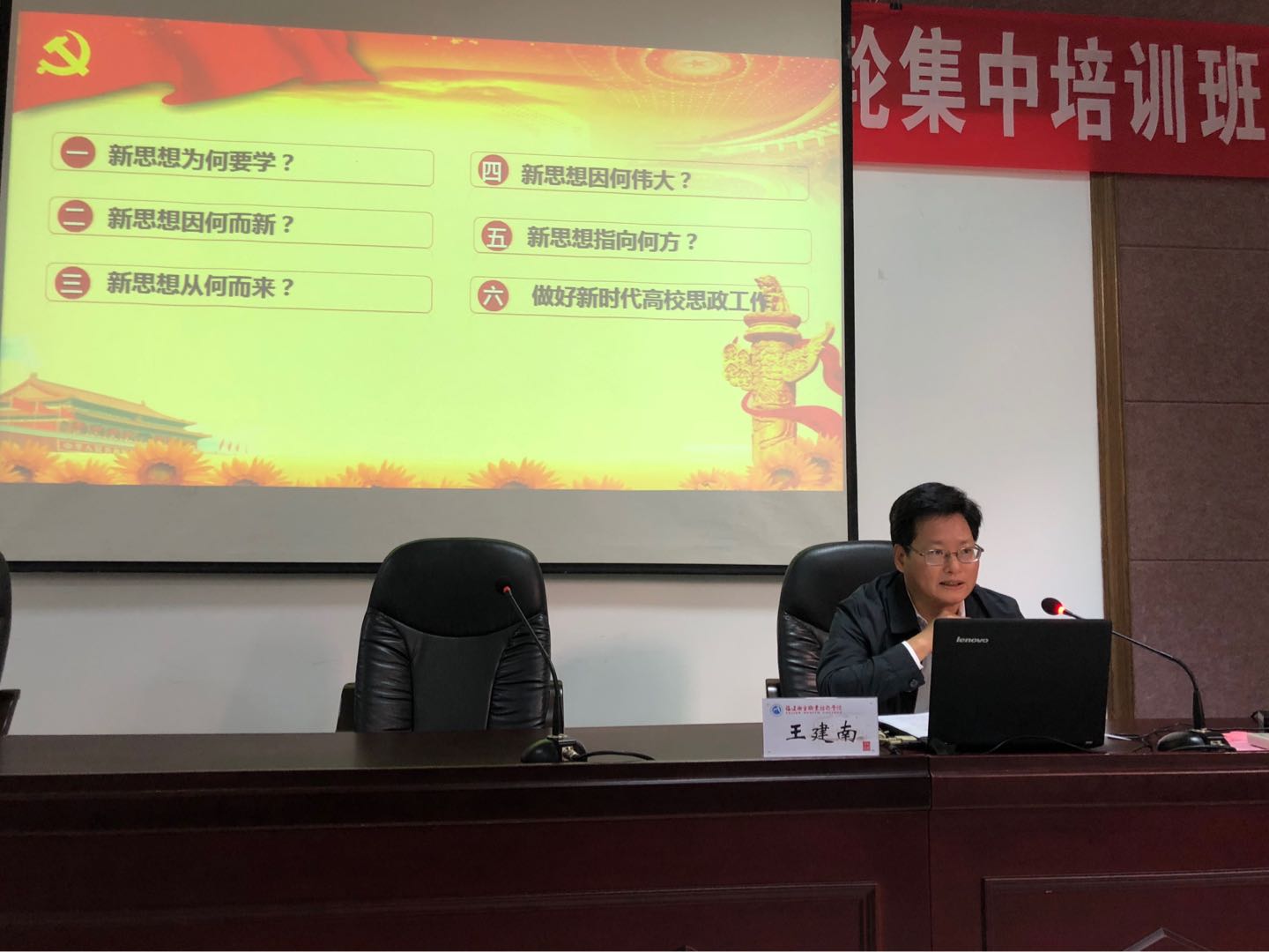 開班儀式上,福建省高校學(xué)習(xí)貫徹習(xí)近平新時(shí)代中國(guó)特色社會(huì)主義思想宣講團(tuán)團(tuán)長(zhǎng)、省委教育工委副書記王建南為全體學(xué)員們作了題為《按照學(xué)懂弄通做實(shí)的要求把學(xué)習(xí)貫徹習(xí)近平新時(shí)代中國(guó)特色社會(huì)主義思想引向深入》的專題講座,從新思想“為何要學(xué)”“因何而新”“從何而來”“因何偉大”“指向何方”“如何做好新時(shí)代高校思政工作”六個(gè)方面深入闡釋了學(xué)習(xí)貫徹落實(shí)新思想的方法論。強(qiáng)調(diào)指出,當(dāng)前我國(guó)進(jìn)入了新時(shí)代,習(xí)近平新時(shí)代中國(guó)特色社會(huì)主義思想是這個(gè)偉大時(shí)代產(chǎn)生的偉大思想理論。其重大政治意義在于它確立和鞏固習(xí)近平總書記在黨中央的核心、全黨的核心地位提供了堅(jiān)強(qiáng)的理論基礎(chǔ);重大歷史意義在于它的形成和實(shí)踐使中國(guó)成為科學(xué)社會(huì)主義新的理論策源地和實(shí)踐創(chuàng)新地;重大理論意義在于它是馬克思主義同中國(guó)實(shí)際相結(jié)合的又一次歷史性飛躍成果,譜寫了21世紀(jì)馬克思主義、當(dāng)代中國(guó)馬克思主義新篇章;重大實(shí)踐意義在于它把中國(guó)特色社會(huì)主義帶進(jìn)一個(gè)新時(shí)代,成為全面建成社會(huì)主義現(xiàn)代化強(qiáng)國(guó)、實(shí)現(xiàn)中華民族偉大復(fù)興的行動(dòng)指南;重大世界意義在于它給世界上那些既希望加快發(fā)展又希望保持自身獨(dú)立性的國(guó)家和民族提供了全新的路徑選擇,為解決人類問題貢獻(xiàn)了中國(guó)智慧和中國(guó)方案。結(jié)合學(xué)院工作,王建南副書記還宣講了全國(guó)教育大會(huì)精神,對(duì)如何做好新時(shí)代高校思想政治工作提出指導(dǎo)意見。他勉勵(lì)全體學(xué)員們要不斷堅(jiān)定理想信念,提高知識(shí)水平,掌握過硬本領(lǐng),用思想之光照亮奮斗之路,用信仰之力開創(chuàng)美好未來。