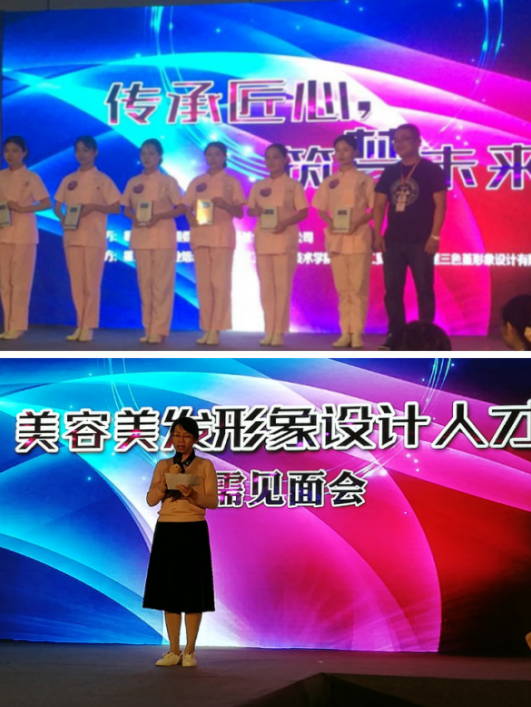 活動(dòng)中,17級(jí)醫(yī)學(xué)美容技術(shù)專業(yè)陳萍、張藝英、吳琳琳、王雨虹、黃穎、徐舒婷六位學(xué)生向來會(huì)嘉賓展示醫(yī)學(xué)美容護(hù)膚技能,體現(xiàn)了同學(xué)們勤學(xué)嚴(yán)謹(jǐn)?shù)膶W(xué)習(xí)風(fēng)貌;吳明老師在活動(dòng)中介紹了我院醫(yī)學(xué)美容技術(shù)專業(yè)基本信息、核心課程、師資力量、獲獎(jiǎng)風(fēng)采等,展示了我院醫(yī)學(xué)美容技術(shù)專業(yè)的特色及辦學(xué)優(yōu)勢,加深了行業(yè)對我院醫(yī)學(xué)美容技術(shù)專業(yè)的了解程度。本次活動(dòng)同時(shí)也讓師生們了解目前美容市場發(fā)展動(dòng)態(tài)和趨勢,了解行業(yè)人才供需方向,更好地結(jié)合實(shí)際,實(shí)施課程改革、教學(xué)改革,為社會(huì)輸送優(yōu)秀的醫(yī)學(xué)美容技術(shù)技能人才。