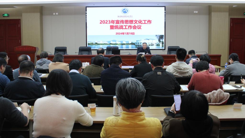 1月18日下午,我校在厚德樓六樓會(huì)議室召開(kāi)2023年宣傳思想文化工作暨統(tǒng)戰(zhàn)工作會(huì)議。學(xué)校領(lǐng)導(dǎo)及全體中層干部、師生黨支部書(shū)記代表、統(tǒng)戰(zhàn)工作人員代表、各學(xué)院輔導(dǎo)員代表參加會(huì)議,會(huì)議由校黨委書(shū)記曾武祈主持。