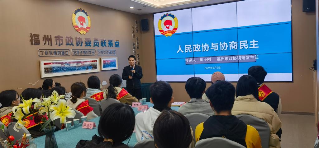 接著,市政協(xié)常委、市政協(xié)調(diào)研室主任陳小剛作《人民政協(xié)與協(xié)商民主》專(zhuān)題講座,深入解讀人民政協(xié)的性質(zhì)、地位、作用及福州市政協(xié)協(xié)商民主實(shí)踐,幫助師生志愿者們更好地理解國(guó)家的政治體系和發(fā)展方向。