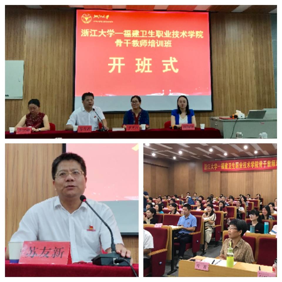 8月19日上午,福建衛(wèi)生職業(yè)技術(shù)學(xué)院2018年暑期骨干教師培訓(xùn)班在浙江大學(xué)繼續(xù)教育學(xué)院開班,蘇友新院長、黃銘珊副院長出席了開班儀式。本次培訓(xùn)班是繼復(fù)旦大學(xué)管理干部研討班、古田干部學(xué)院新教師及輔導(dǎo)員培訓(xùn)班后,我院今年“三個(gè)一百”學(xué)習(xí)培訓(xùn)班的最后一個(gè)班次,學(xué)院專業(yè)帶頭人(專業(yè)負(fù)責(zé)人)、教研室主任(實(shí)訓(xùn)中心主任)及骨干教師等100人參加本次培訓(xùn)學(xué)習(xí)。