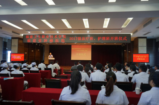 2018年9月3日上午,我院黨委書記曾武祈、院長蘇友新、副院長鄭翠紅率隊先后前往福建省立醫(yī)院、福建省腫瘤醫(yī)院、福州東南眼科醫(yī)院出席2017級護理、影像技術(放射治療方向)、眼視光技術專業(yè)校企合作班開班儀式。參加開班儀式的還有各醫(yī)院領導,雙方有關職能科室負責人,學院相關系部主任、專業(yè)帶頭人、教研室主任及四個班級的全體學生。