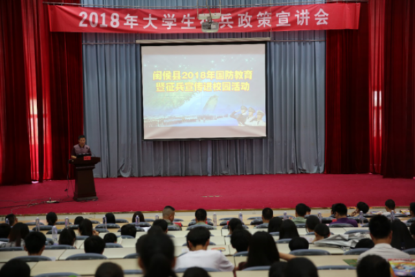 為深入貫徹落實(shí)全國(guó)及全省大學(xué)生征兵工作,提升新形勢(shì)下我院大學(xué)生應(yīng)征入伍宣傳熱潮,6月11日至19日,學(xué)院邀請(qǐng)閩侯縣、荊溪鎮(zhèn)武裝部多次蒞臨我院進(jìn)行2018年大學(xué)生國(guó)防動(dòng)員暨征兵宣講進(jìn)校園系列活動(dòng)。閩侯縣委常委、人武部部長(zhǎng)查水金、學(xué)院黨委副書記林建團(tuán)和閩侯縣人武部、荊溪鎮(zhèn)武裝部和學(xué)院學(xué)工處負(fù)責(zé)人等一同參加了系列活動(dòng)。