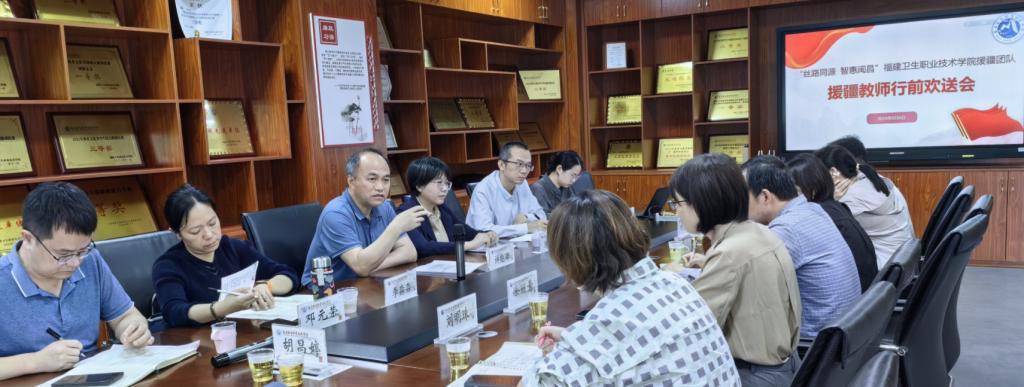 6月6日,我校召開“絲路同源 智惠閩昌”援疆“小組團(tuán)”行前歡送會(huì)。校長(zhǎng)許能鋒,黨政辦公室、教務(wù)處、人事處有關(guān)負(fù)責(zé)人,醫(yī)學(xué)院黨政班子出席歡送會(huì)。會(huì)議由醫(yī)學(xué)院副院長(zhǎng)鄧元榮主持。