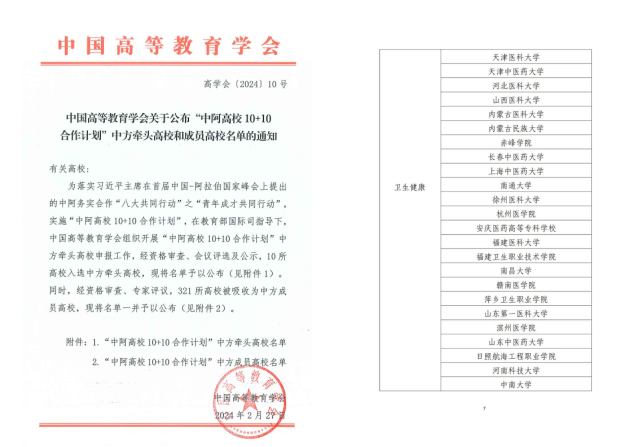近日,中國高等教育學會公布“中阿高校10+10合作計劃”中方牽頭高校和成員高校名單,我校入選“中阿高校10+10合作計劃”衛(wèi)生健康領域中方成員高校,成為福建省唯一一所入選的高職院校。