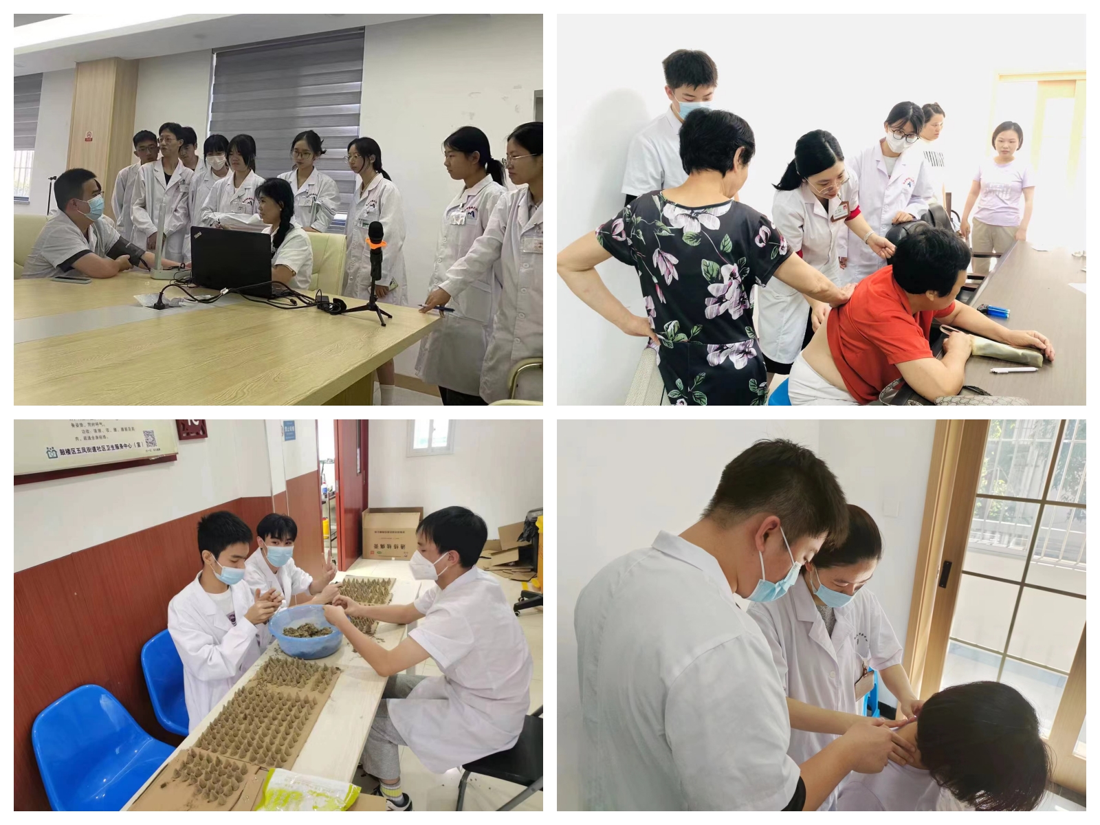 同學們跟隨帶教老師熟悉各項流程,包含婦保的檔案規(guī)整及建卡流程、孕產(chǎn)婦注意事項、兒童體格檢查流程、預防針接種注意事項、頸椎病的預防及門診問診和病歷學習,同時也積極參與健康講座、刮痧練習和三伏灸制作。